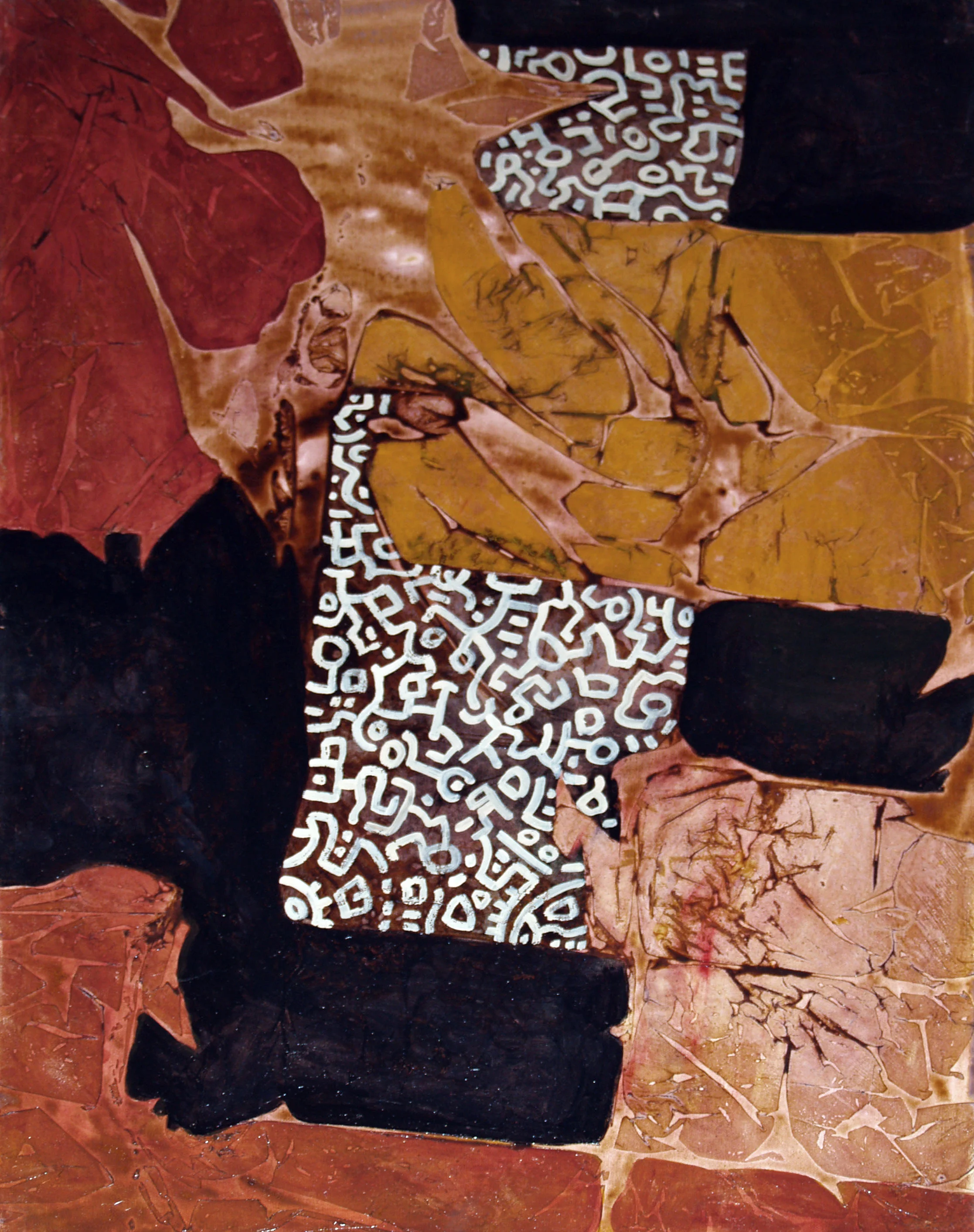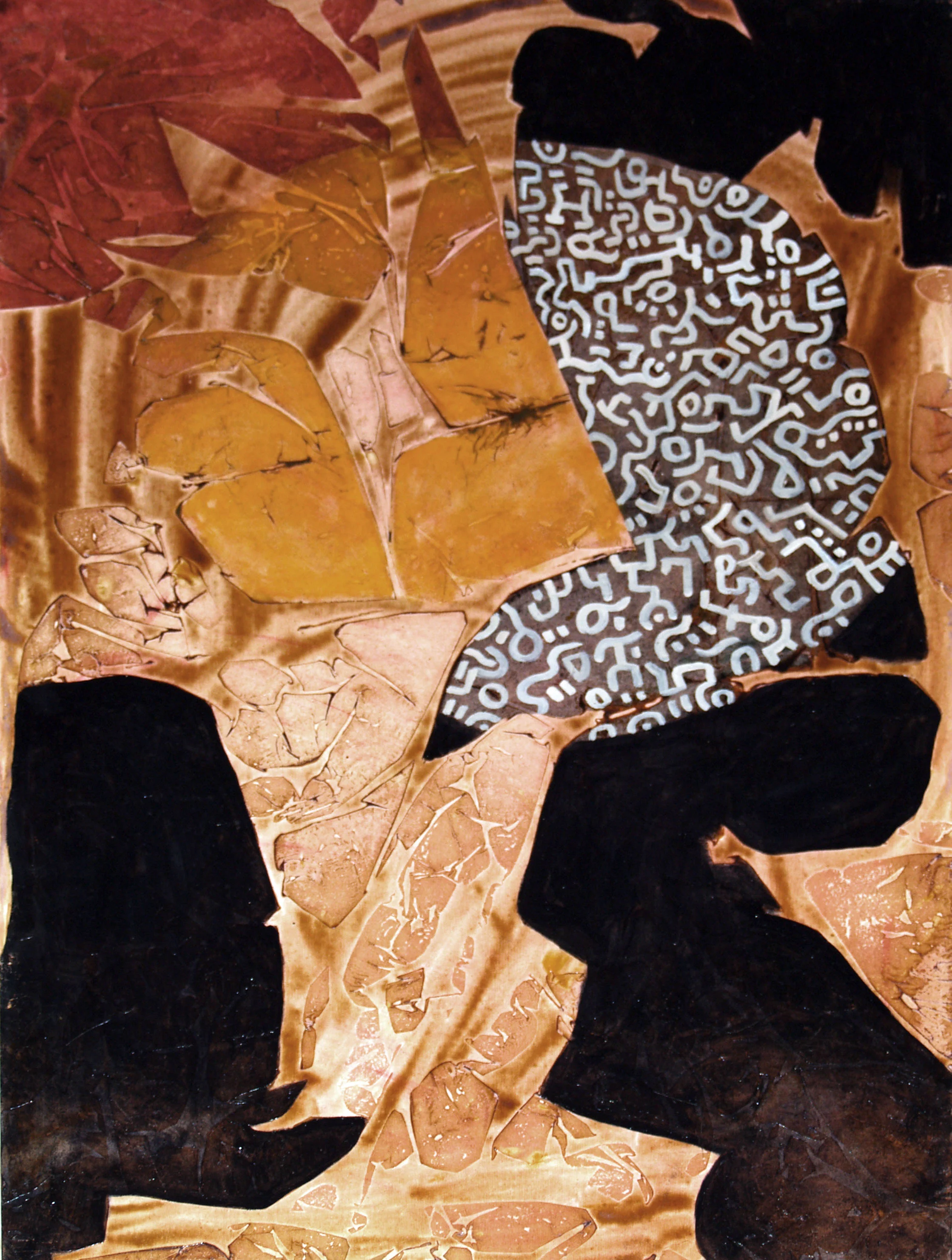 Several years ago I did a series of paintings that dealt with imaginary aerial landscapes. With this new series of work I go to the opposite end and imagine microscopic environments plus imaginary abstract forms and shapes. For inspiration I looked at decaying textures that I came across such as found rusted and cracked objects, paint peeling off walls and buildings, oils stains on the pavement and other examples of urban/nature decay. - Miguel Cortez, August 2007